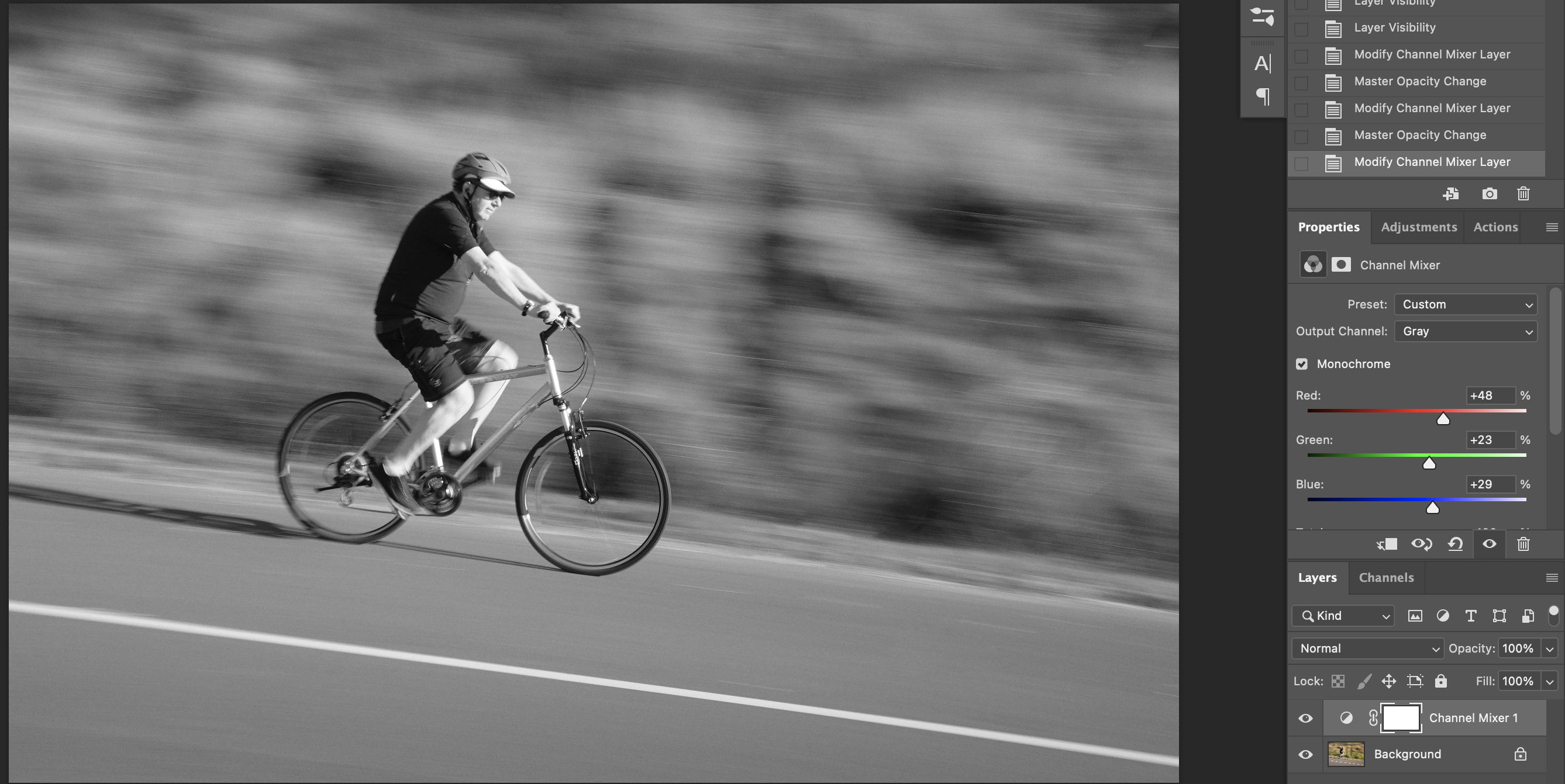 - Layer > New Adjustment Layer > Channel Mixer