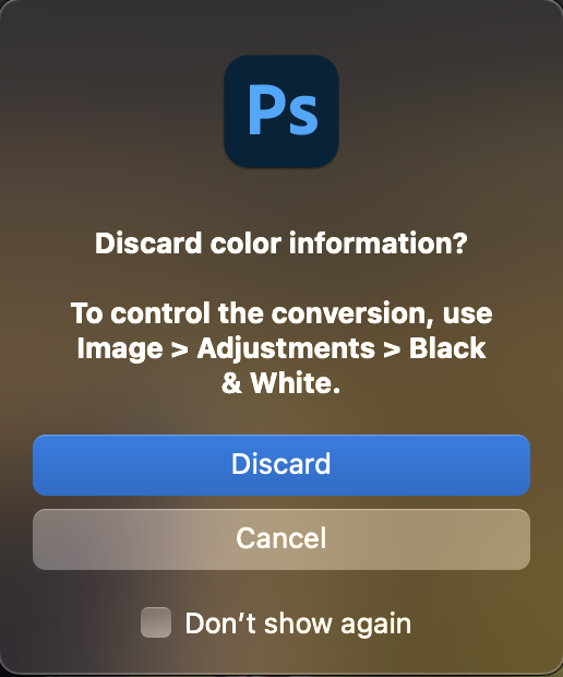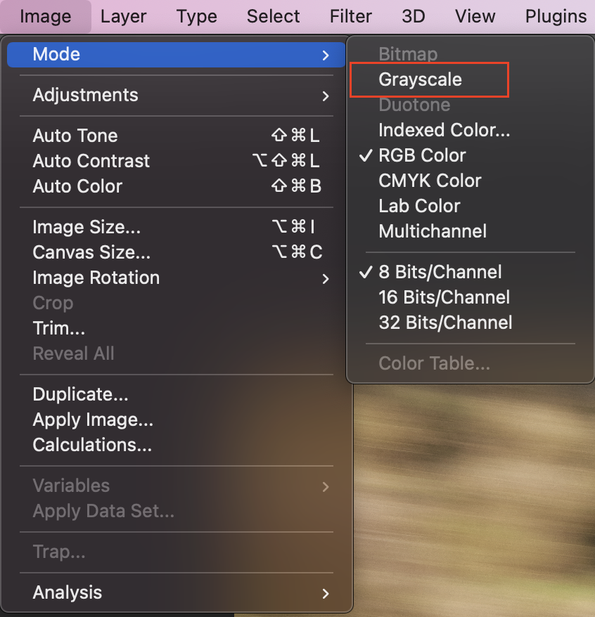 - Image > Mode > Grayscale