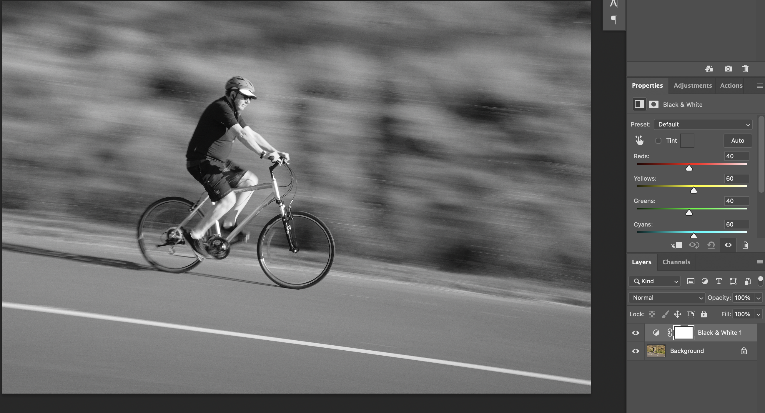 - Layer > New Adjustment Layer > Black and White