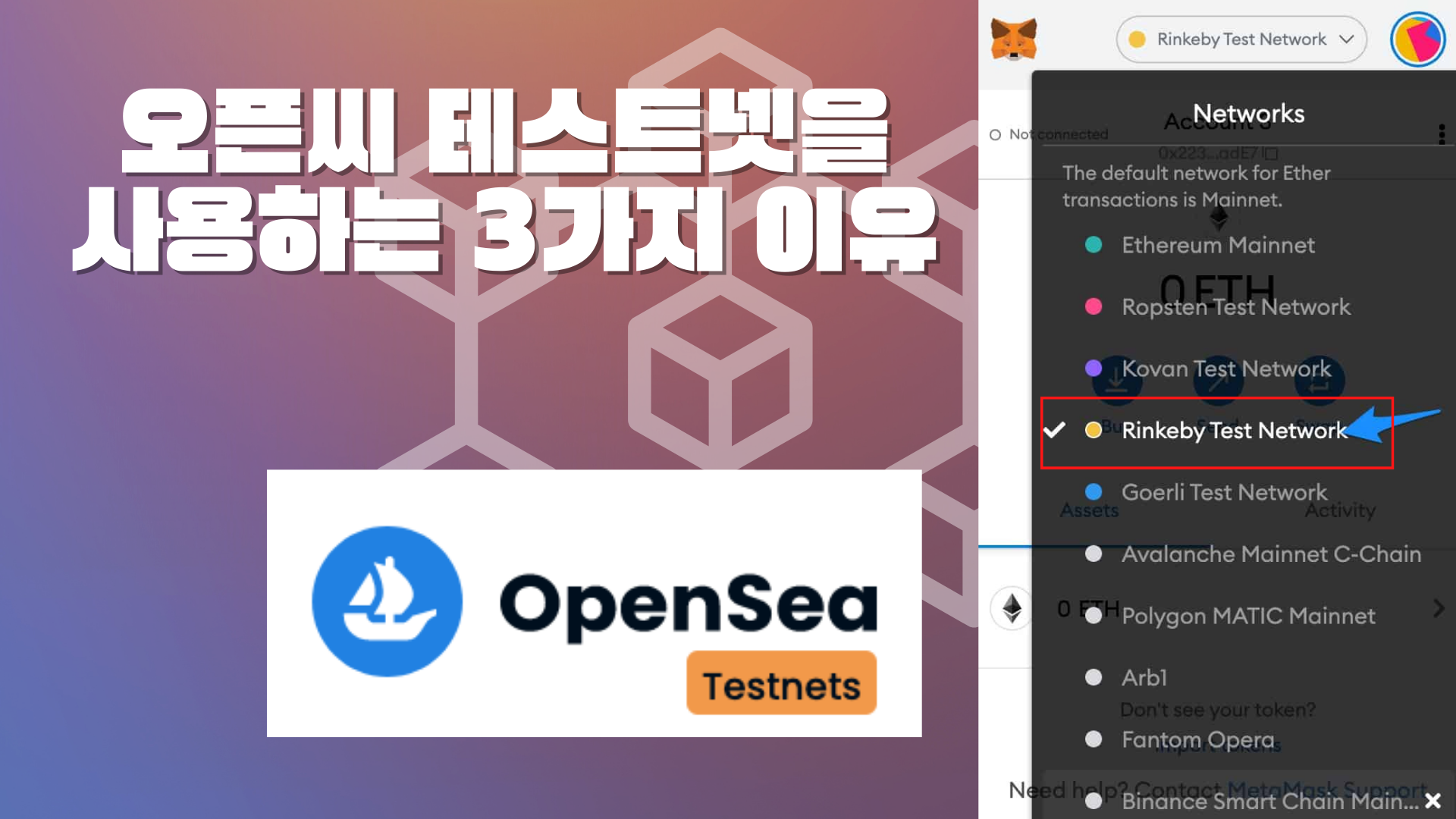 | 3초만에 오픈씨 테스트넷 Rinkeby 메타마스크에 추가하는 방법 (0) | 2022.05.23 |