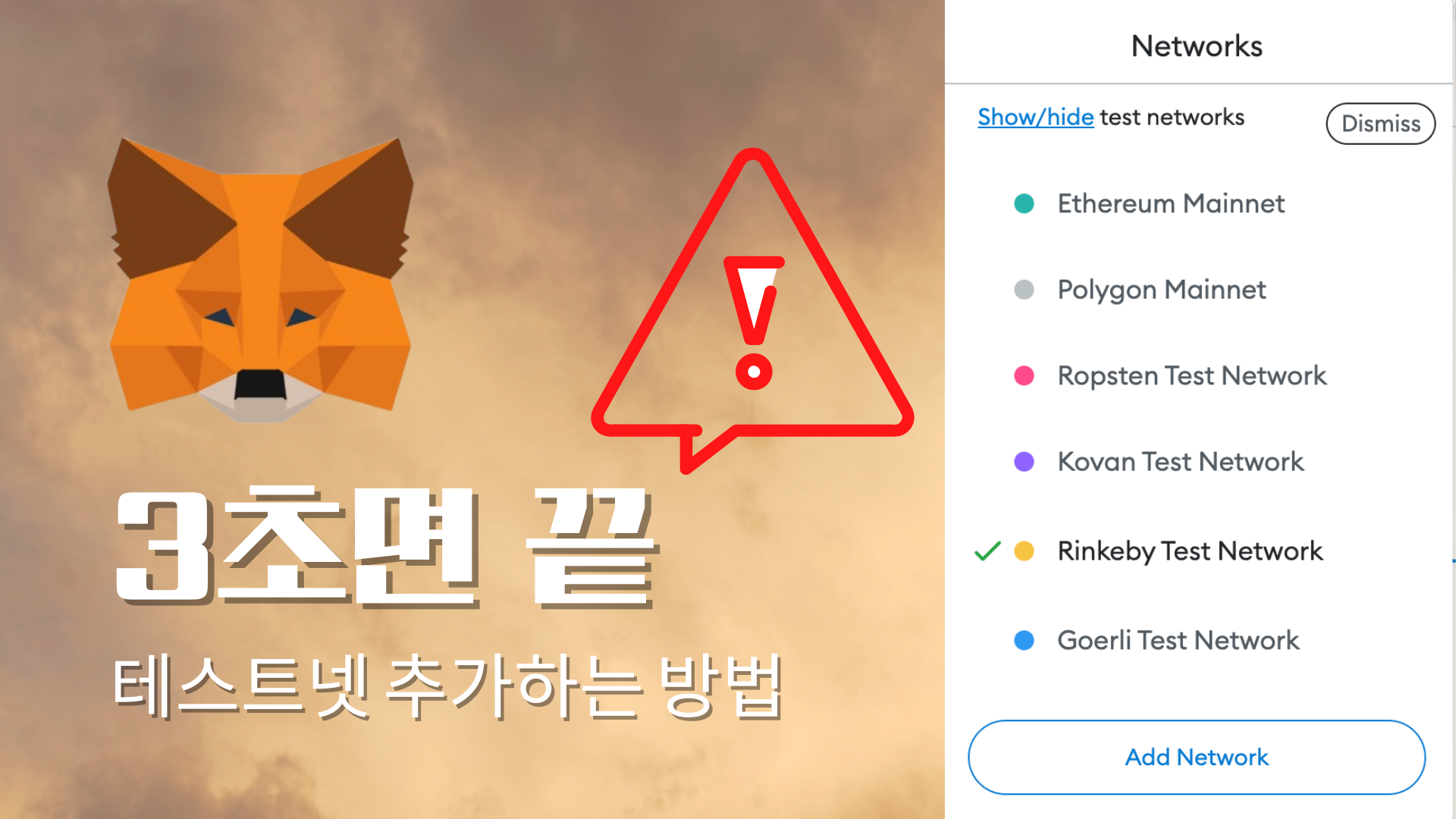 3초 만에 오픈씨 테스트 넷 Rinkeby 메타마스크에 추가하는 방법